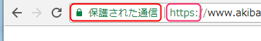 Chromeでは上記に加えて『保護された通信』と表示されます。