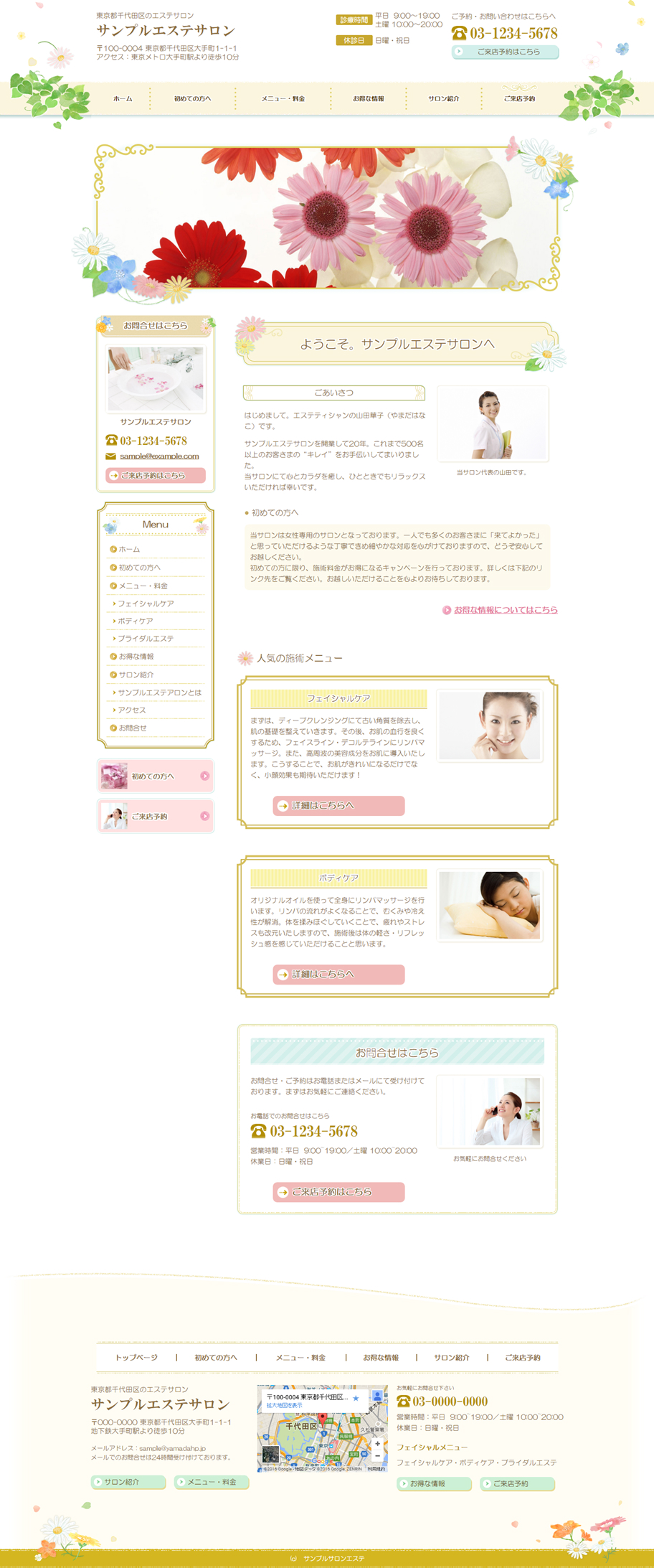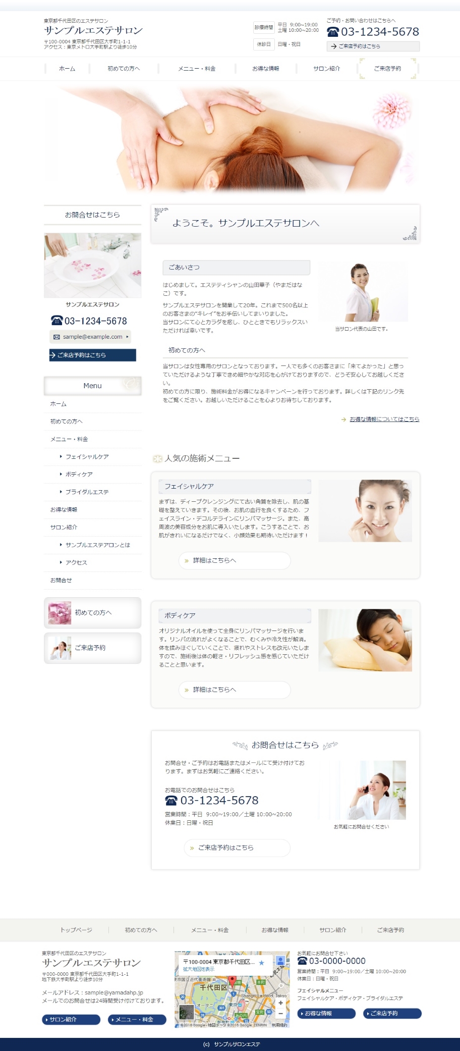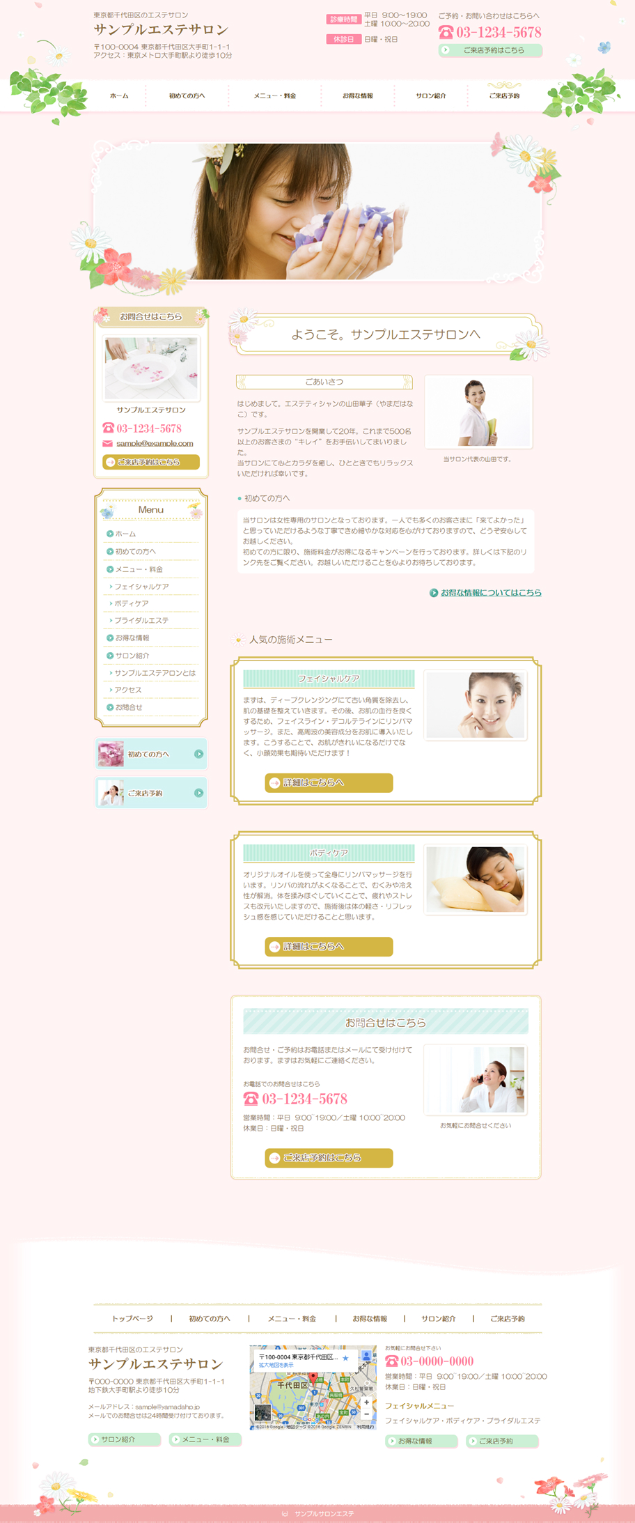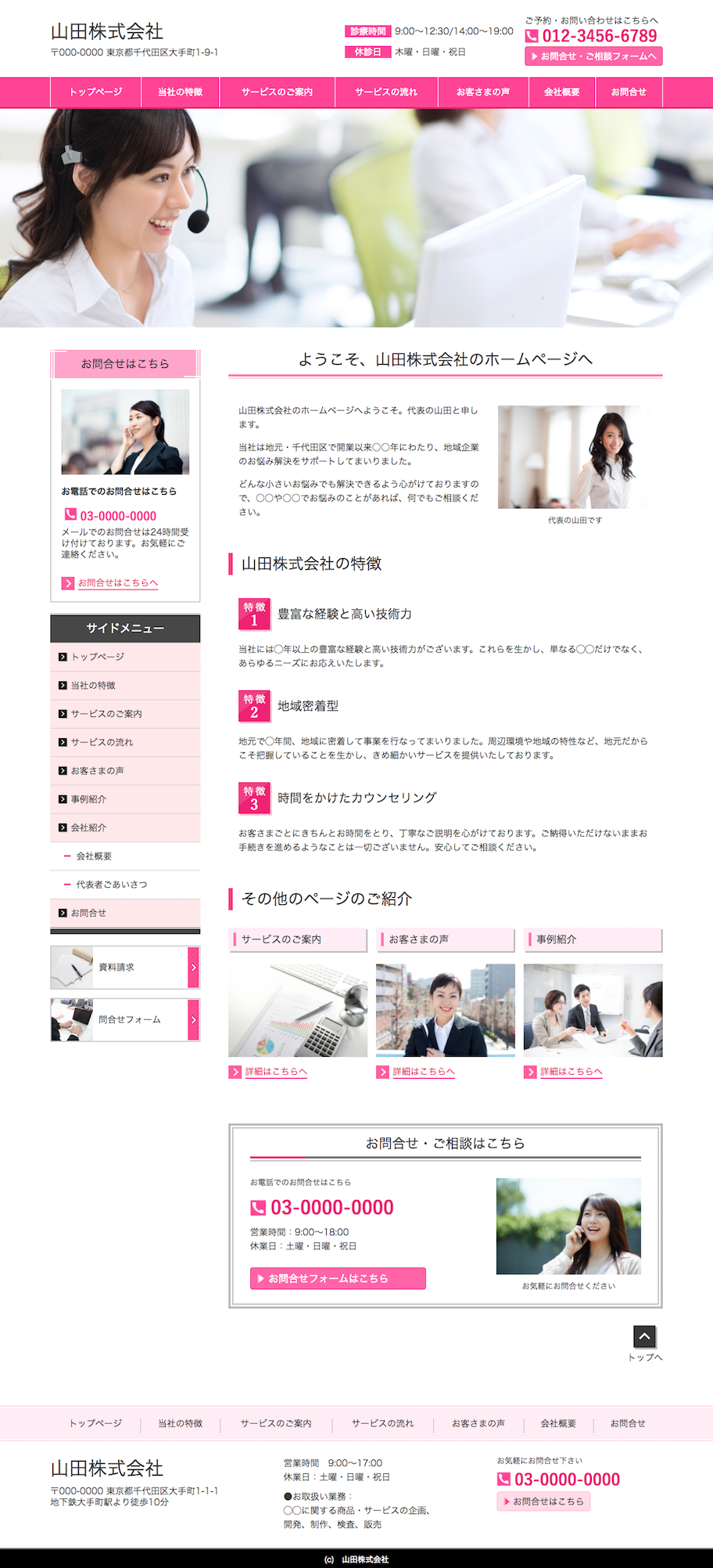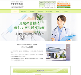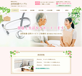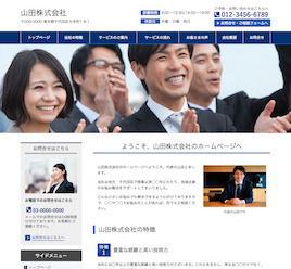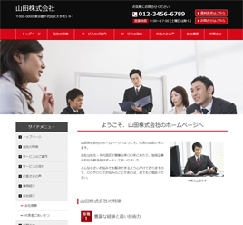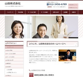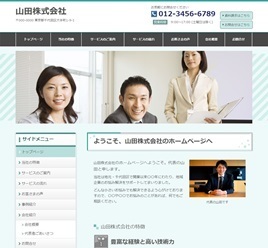 ※サンプルにより、トップページのサイドメニューの有無、色味や装飾(見出しやアイコンの形)などを変更できない場合がございます。 あらかじめご了承ください。
