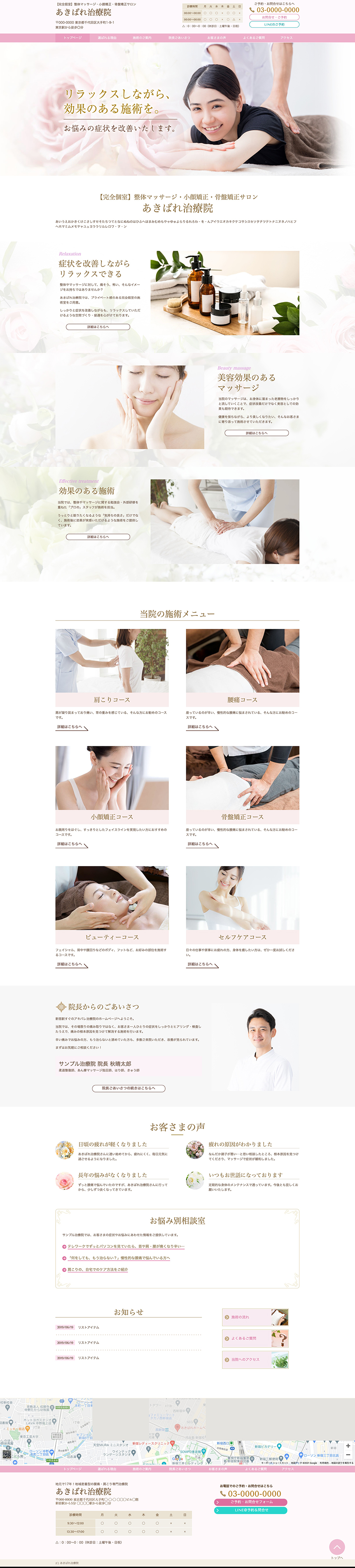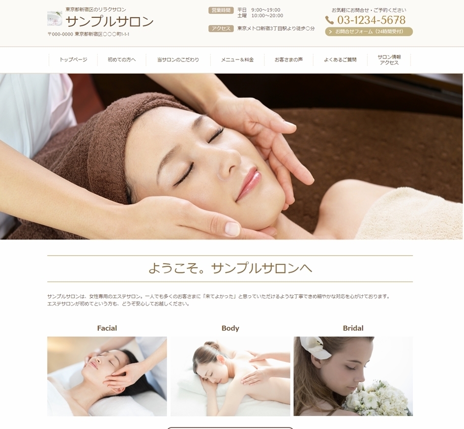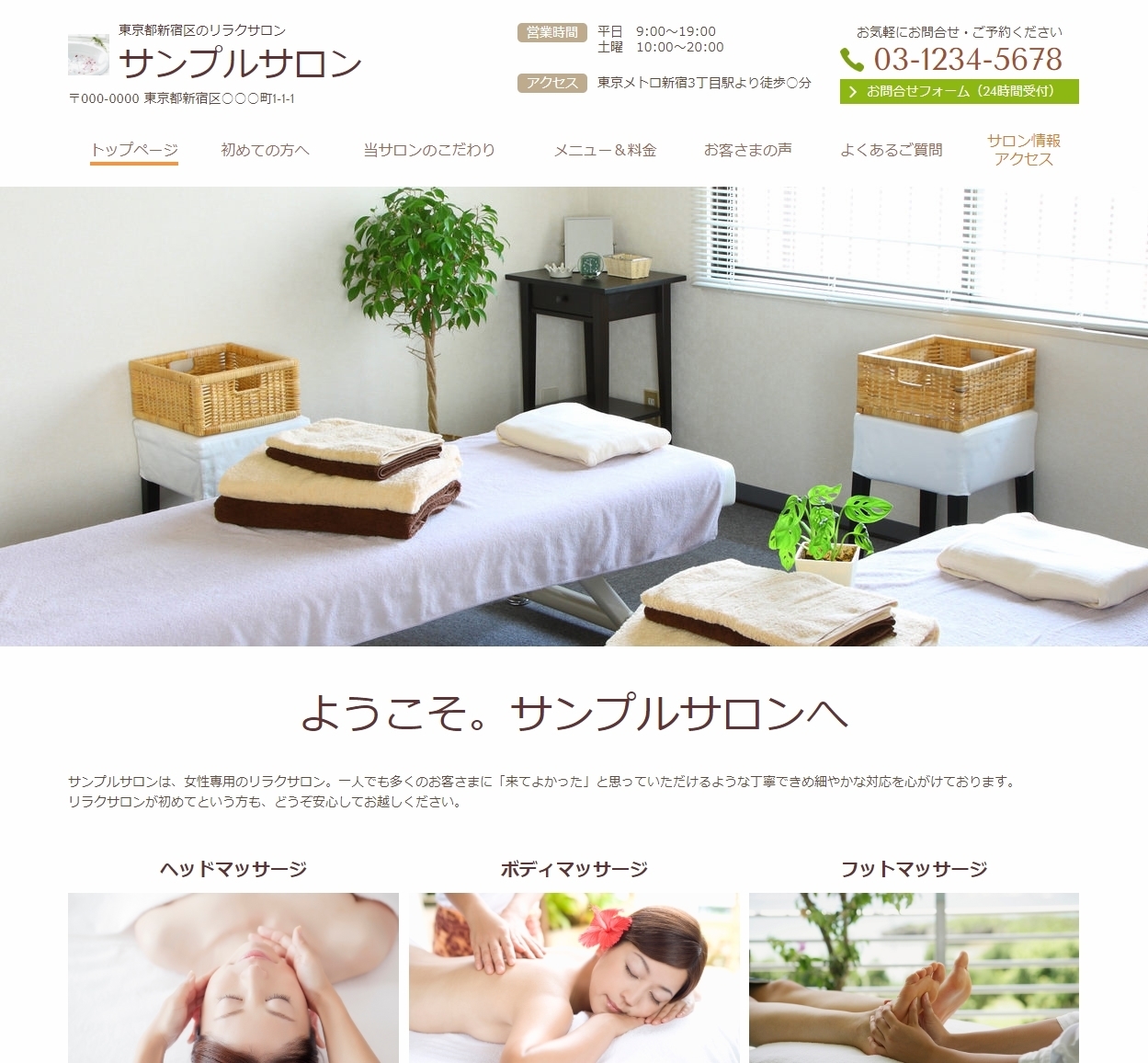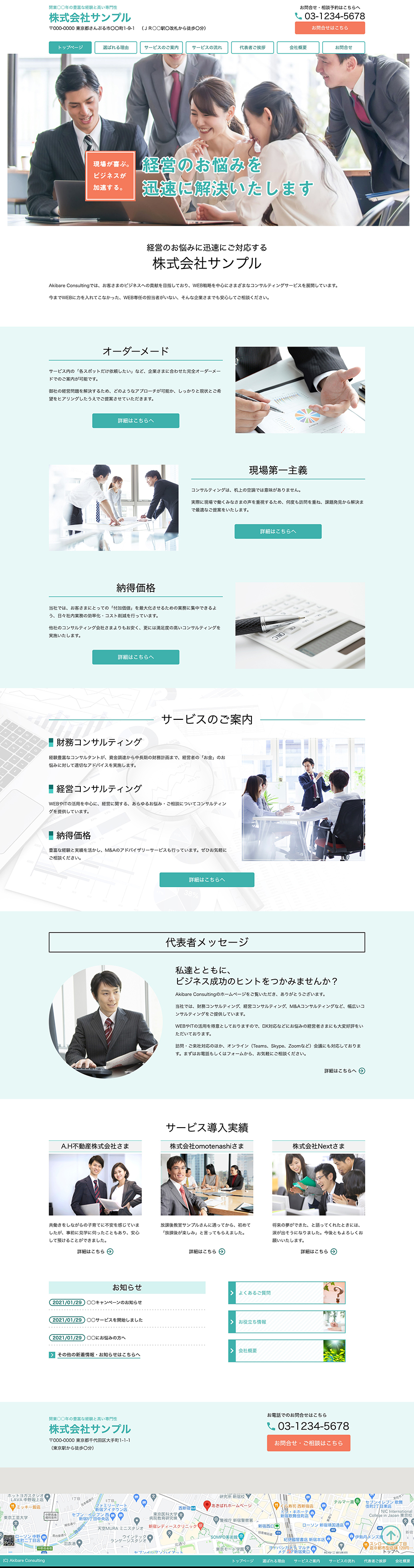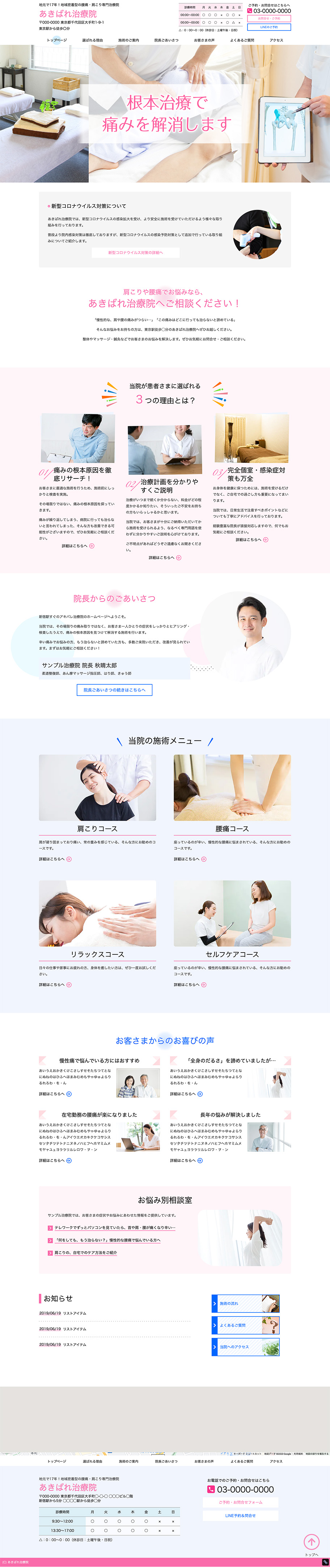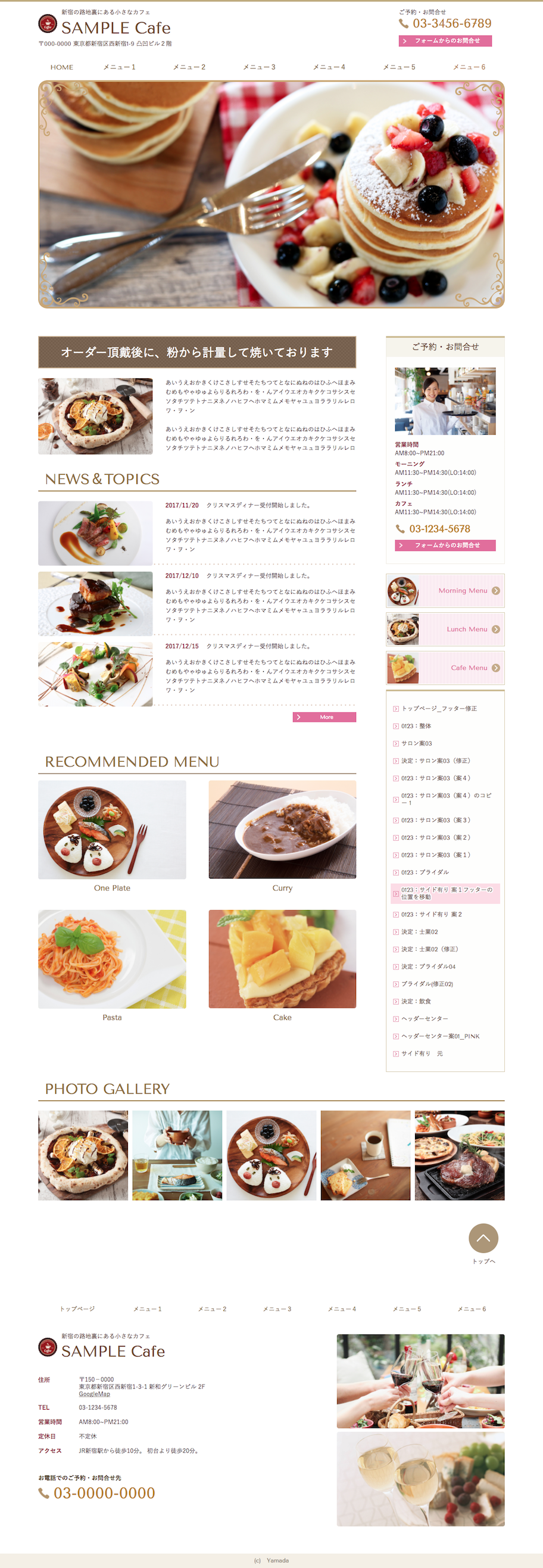 ※サンプルにより、トップページのサイドメニューの有無、色味や装飾(見出しやアイコンの形)などを変更できない場合がございます。 あらかじめご了承ください。