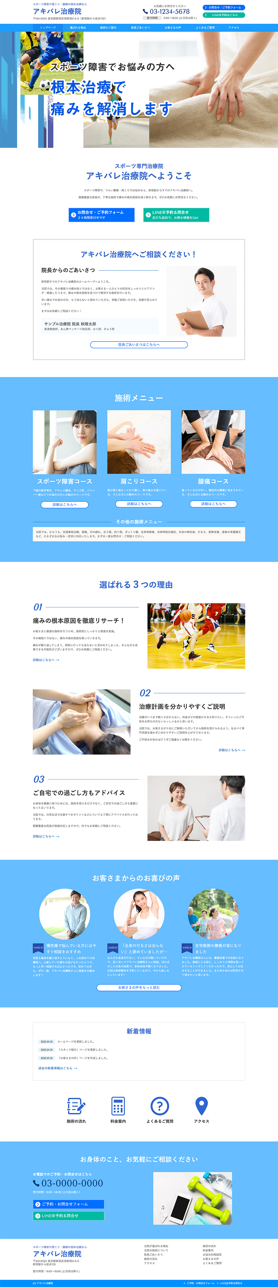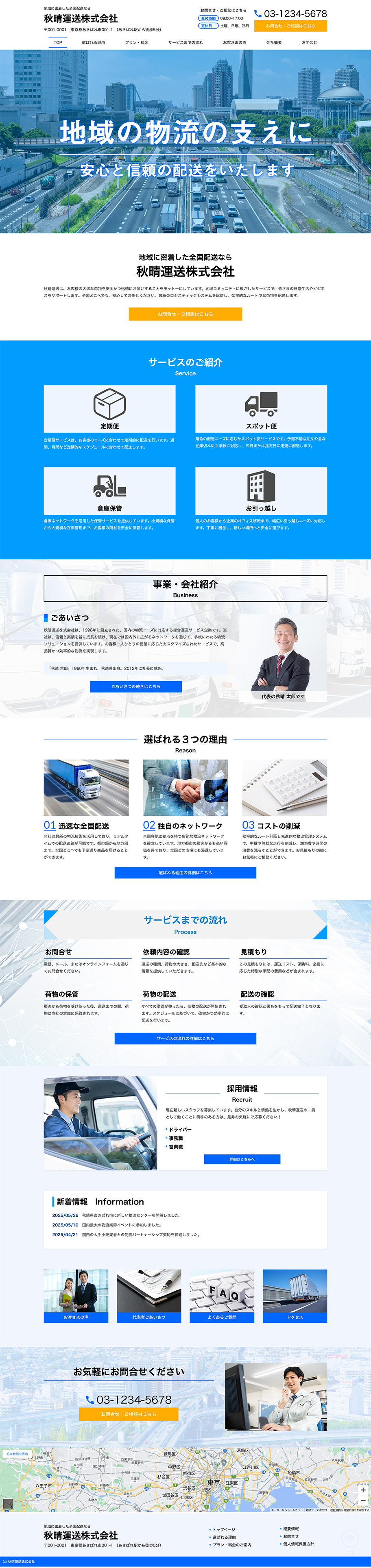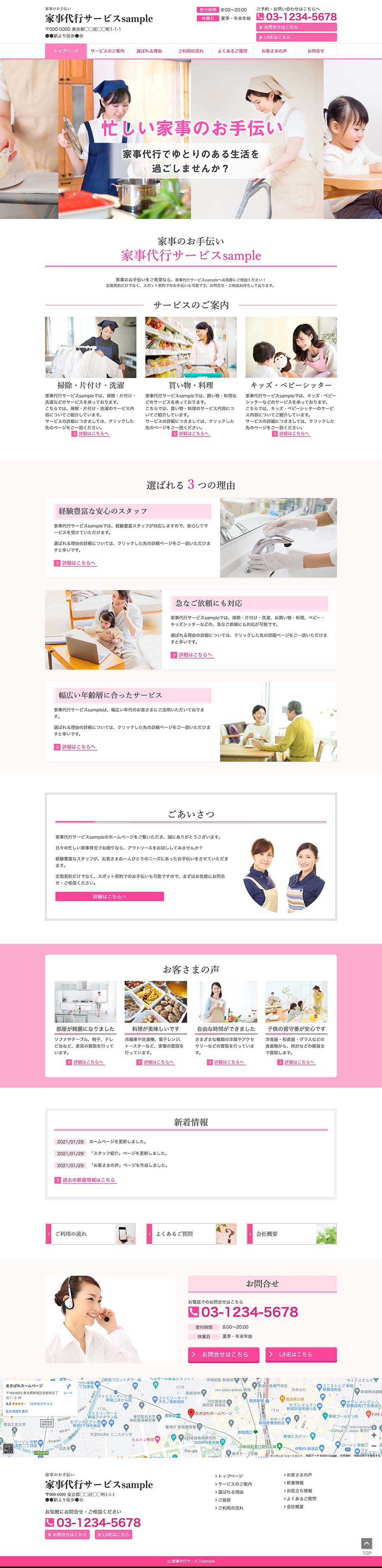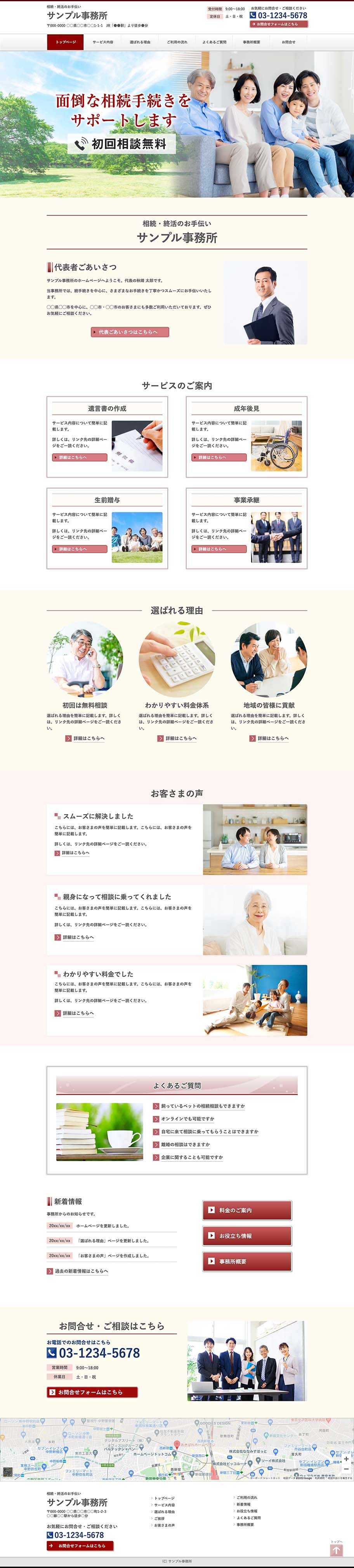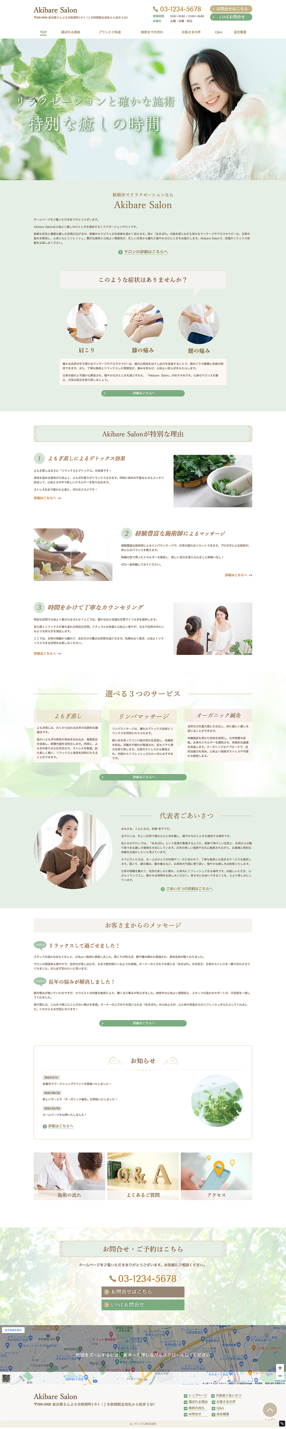 ※サンプルにより、トップページのサイドメニューの有無、色味や装飾(見出しやアイコンの形)などを変更できない場合がございます。 あらかじめご了承ください。