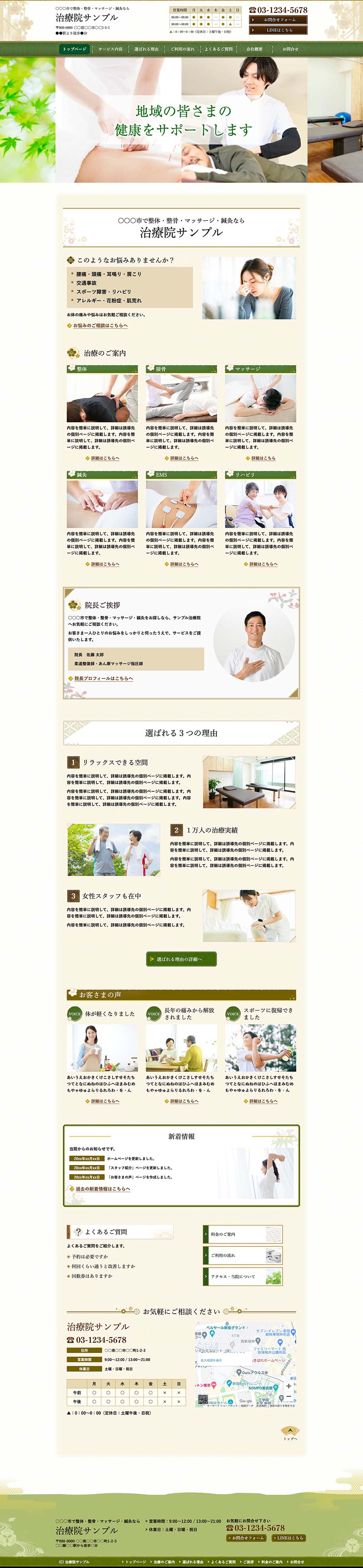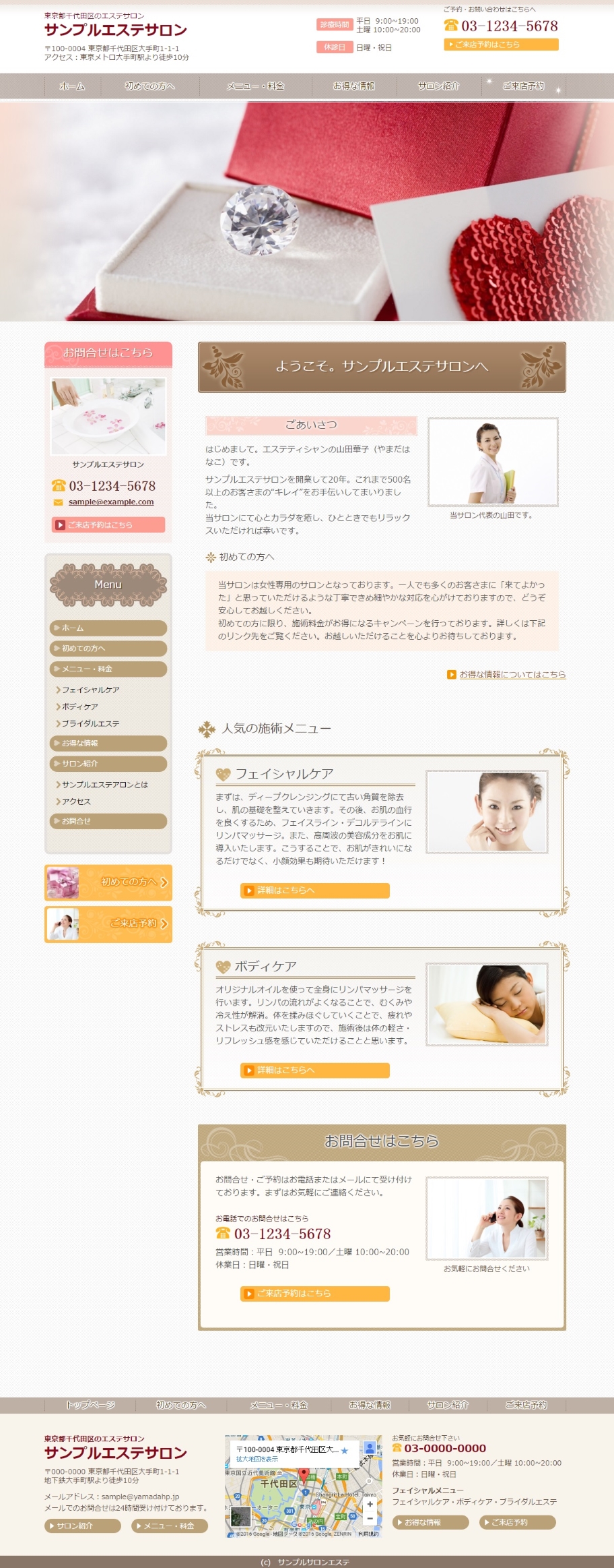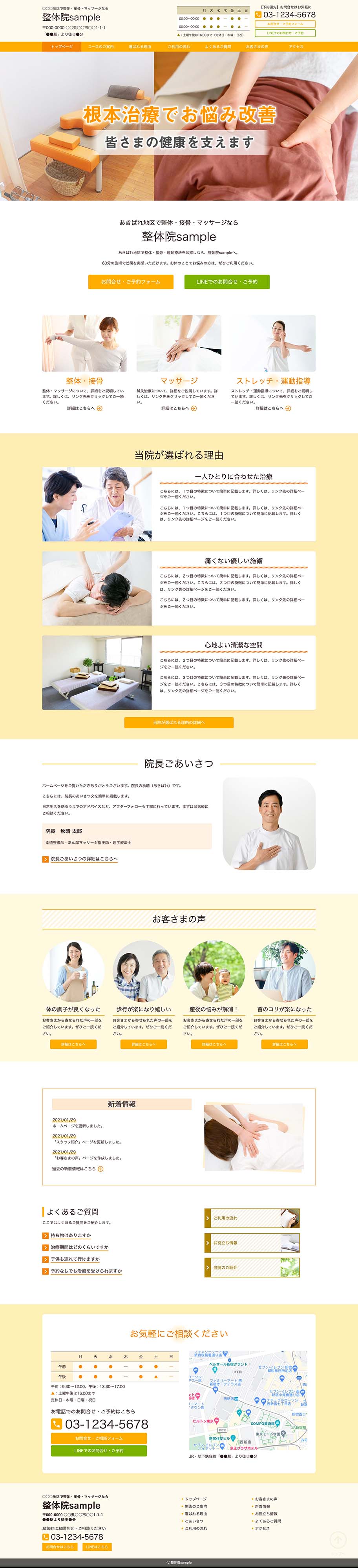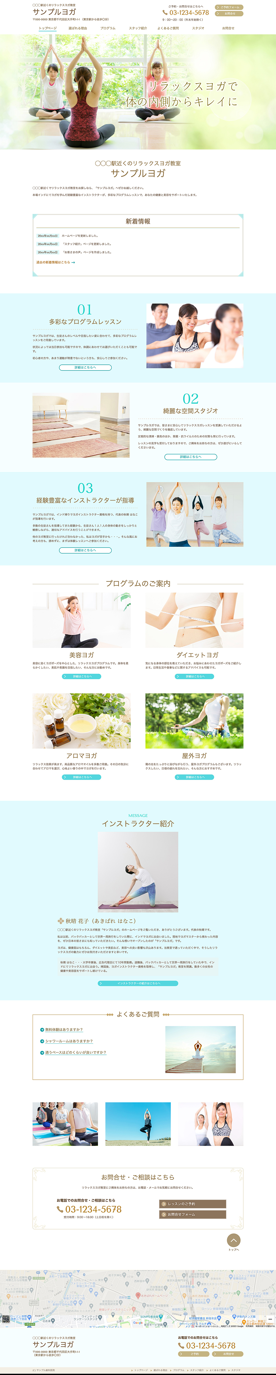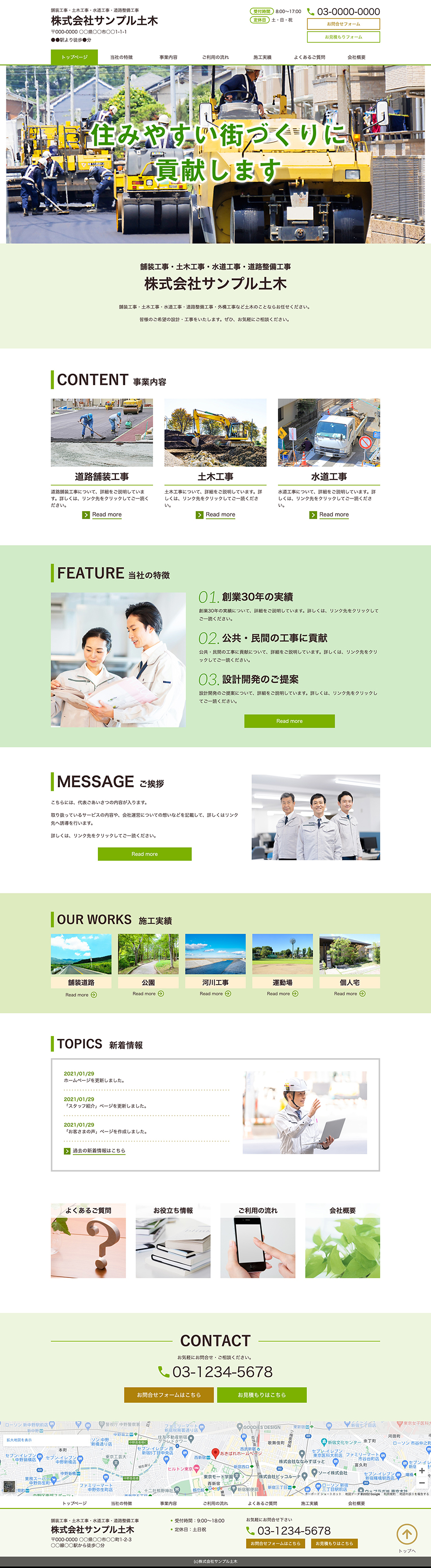 ※サンプルにより、トップページのサイドメニューの有無、色味や装飾(見出しやアイコンの形)などを変更できない場合がございます。 あらかじめご了承ください。
