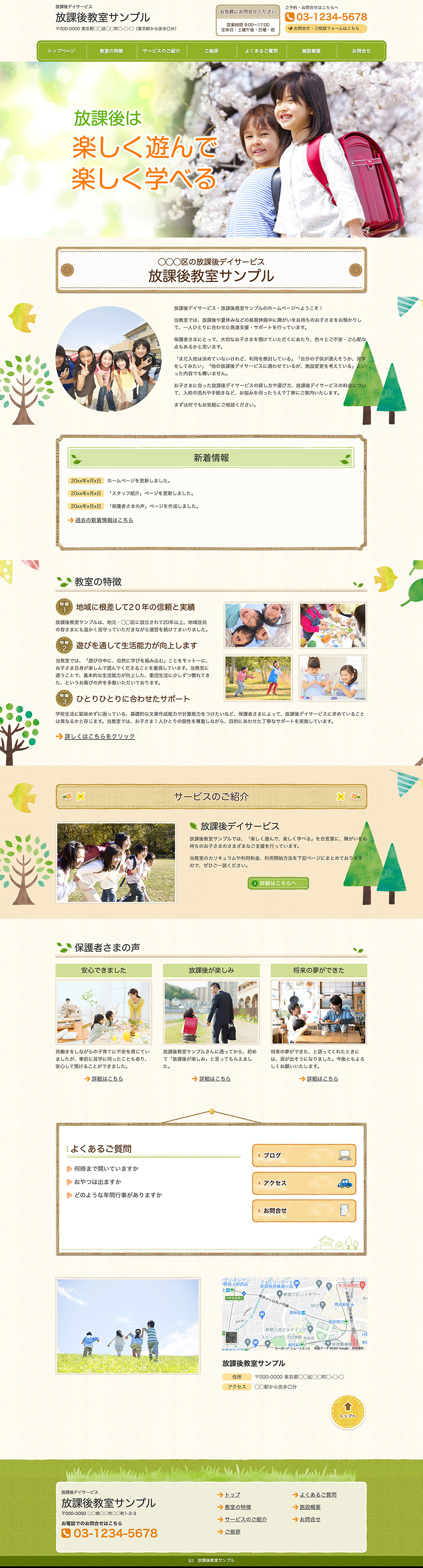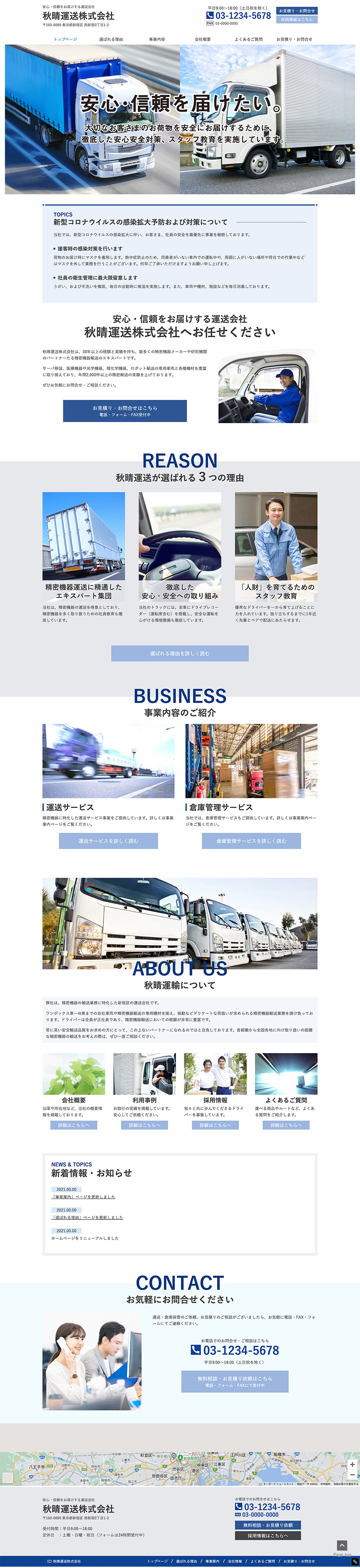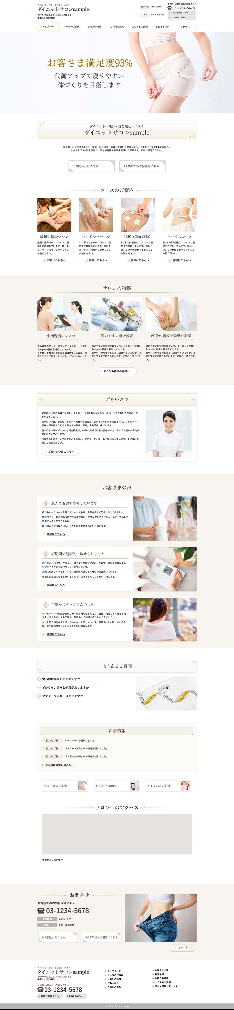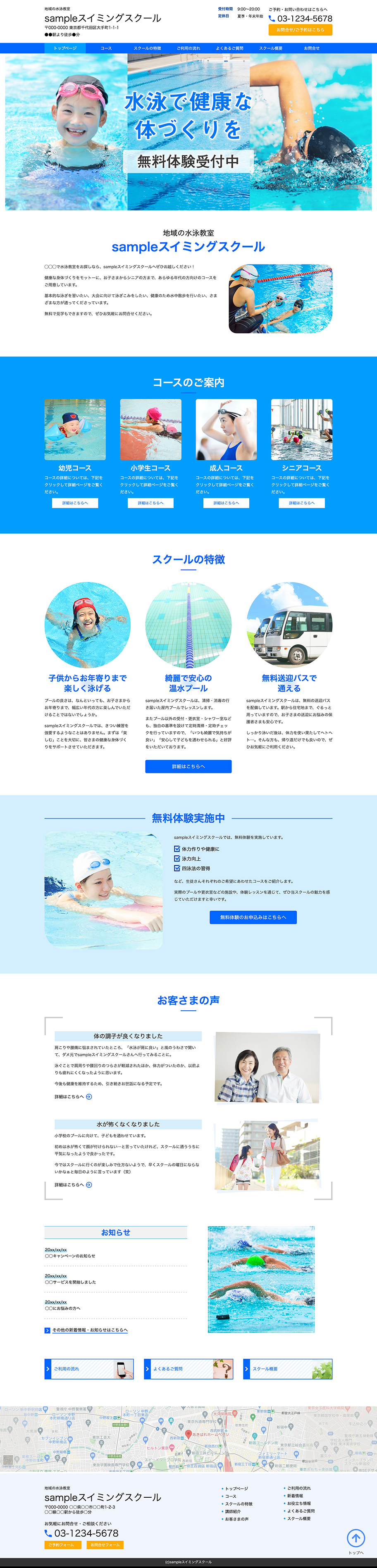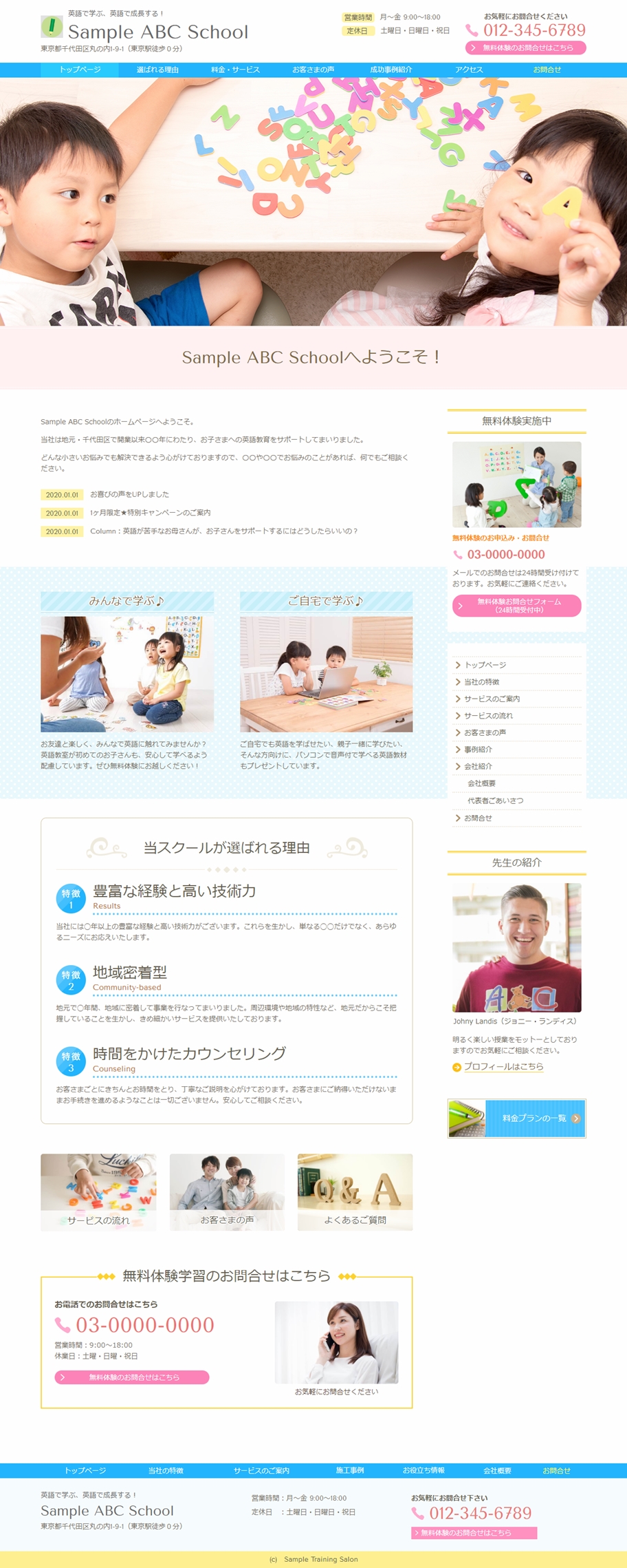 ※サンプルにより、トップページのサイドメニューの有無、色味や装飾(見出しやアイコンの形)などを変更できない場合がございます。 あらかじめご了承ください。