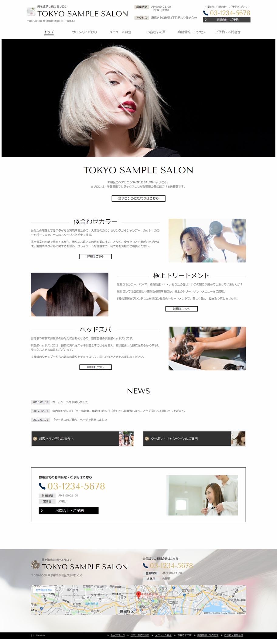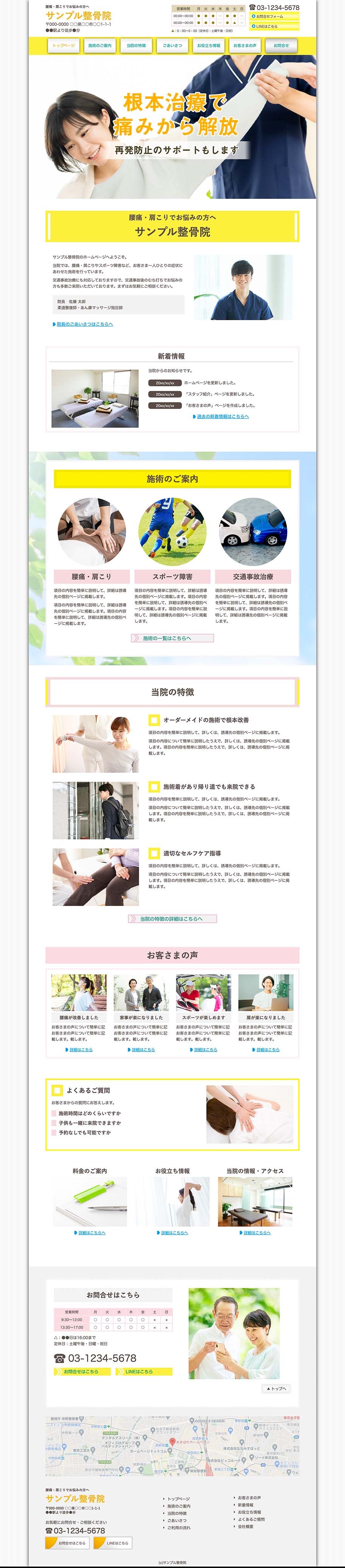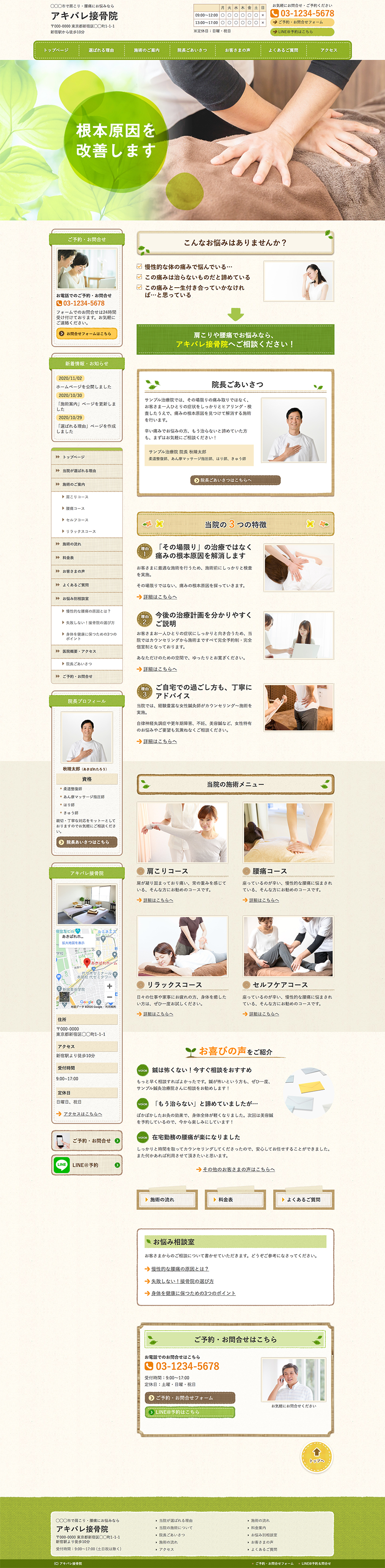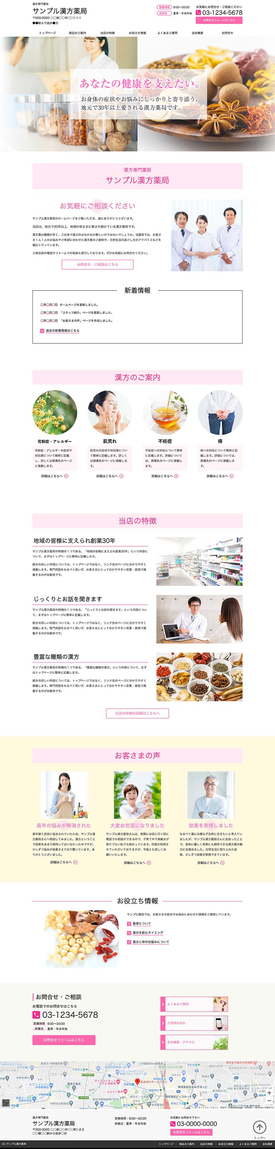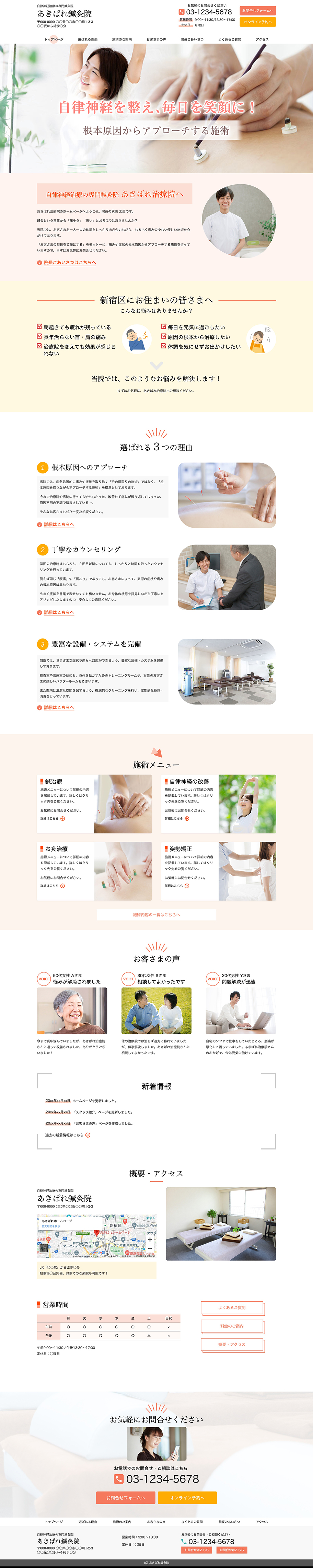 ※サンプルにより、トップページのサイドメニューの有無、色味や装飾(見出しやアイコンの形)などを変更できない場合がございます。 あらかじめご了承ください。