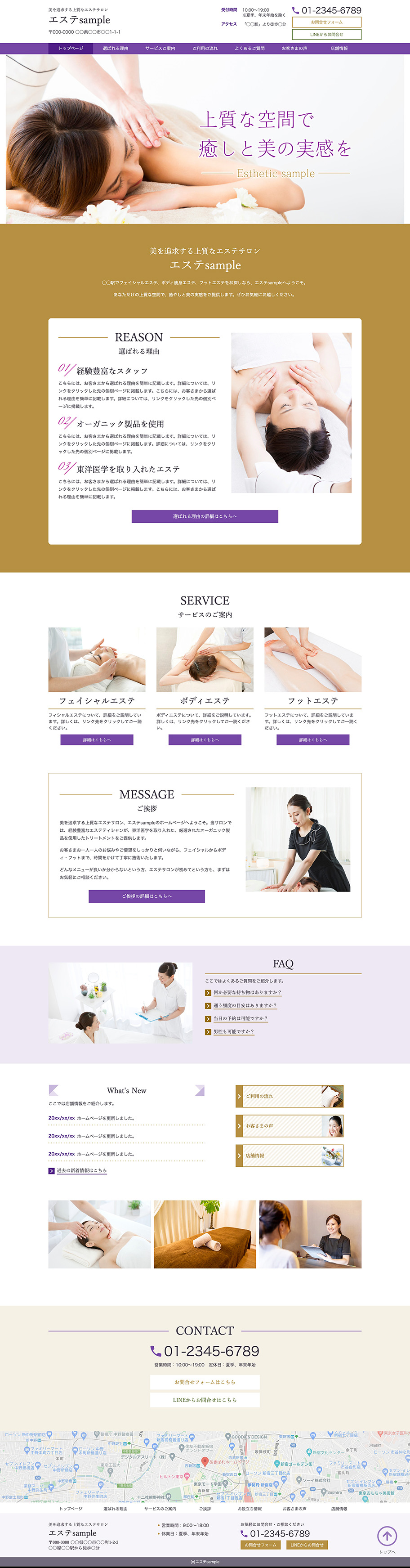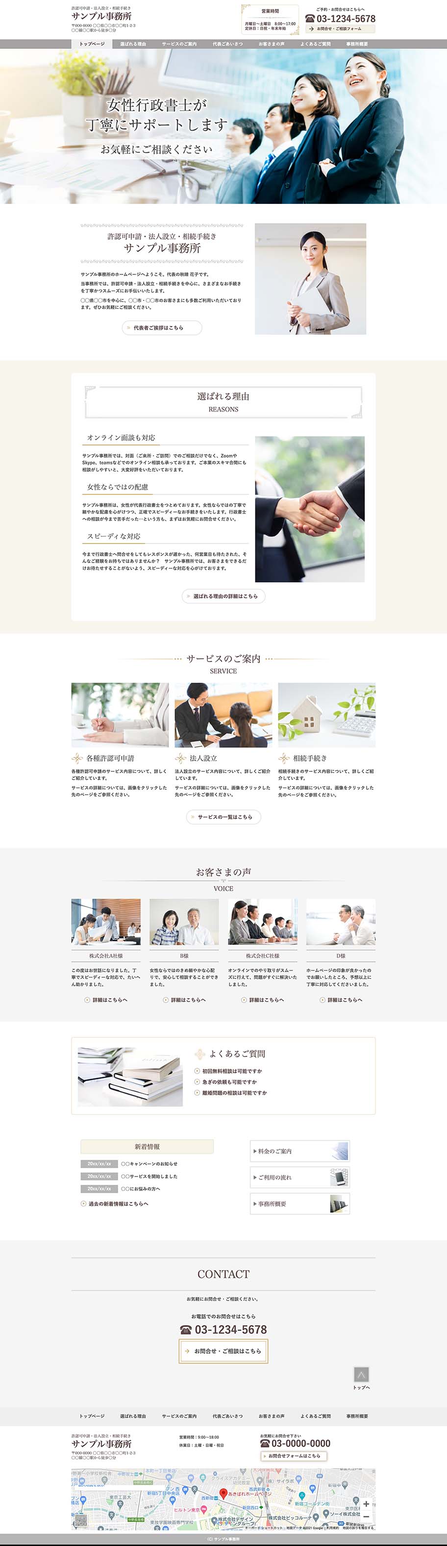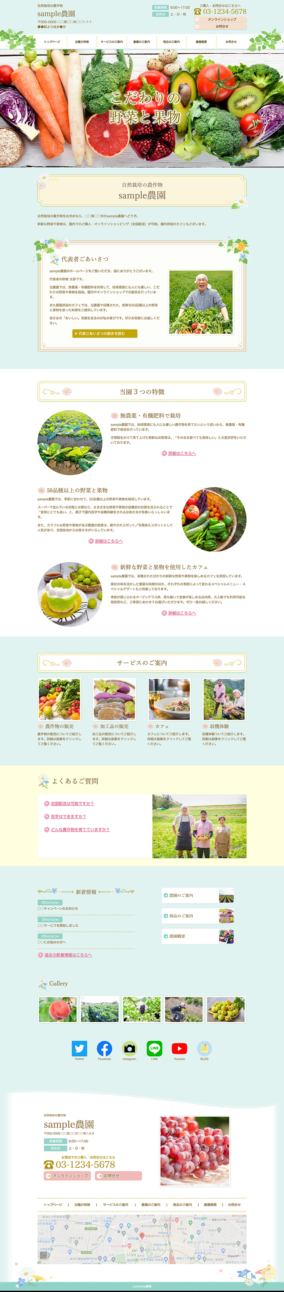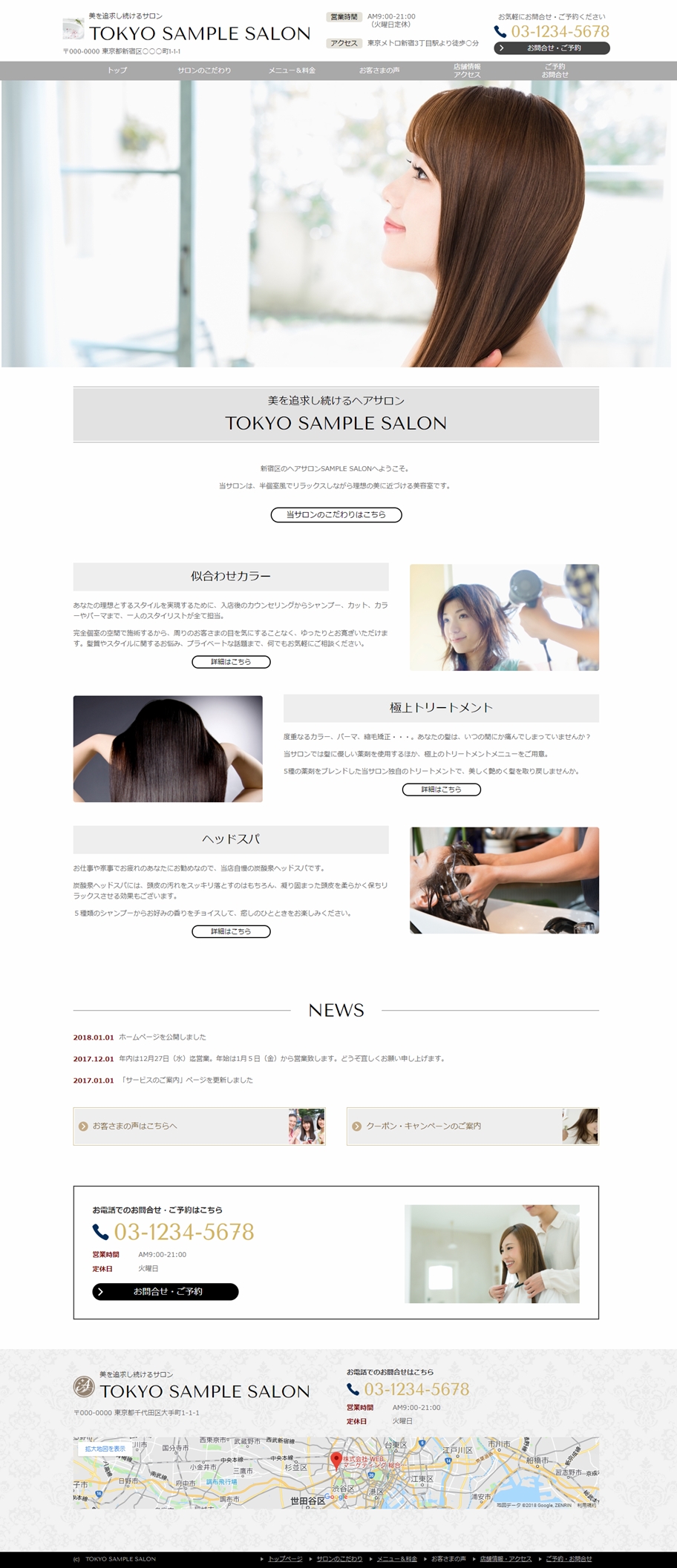 ※サンプルにより、トップページのサイドメニューの有無、色味や装飾(見出しやアイコンの形)などを変更できない場合がございます。 あらかじめご了承ください。