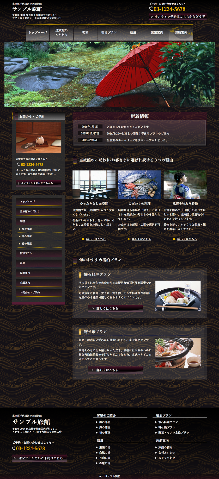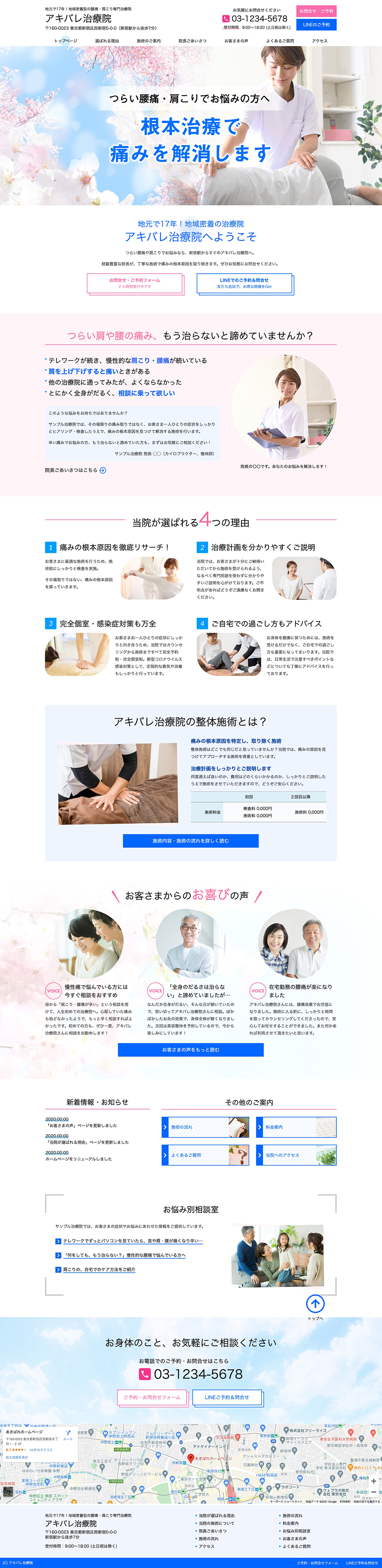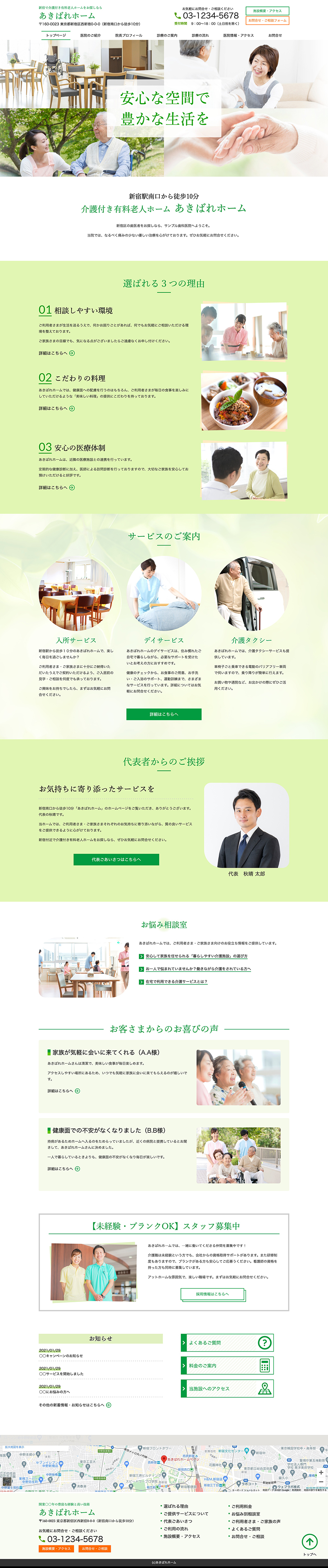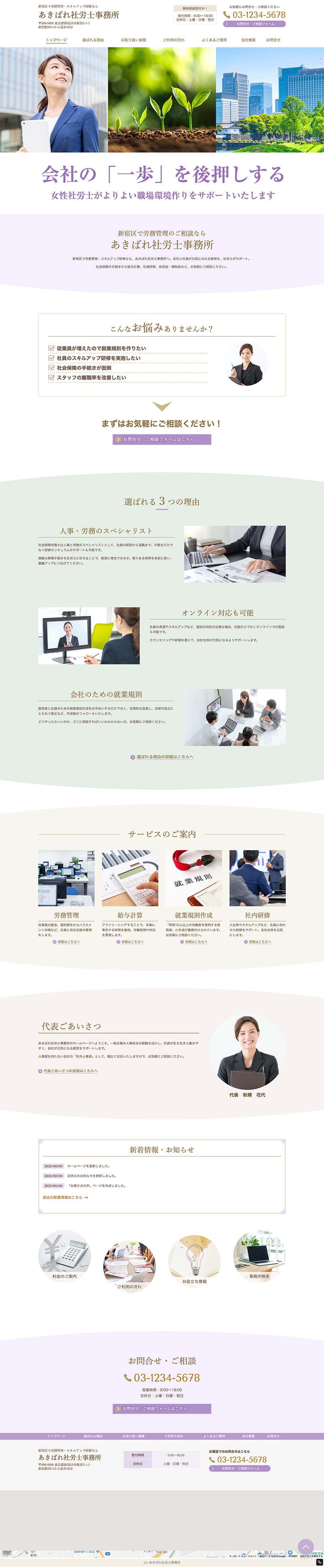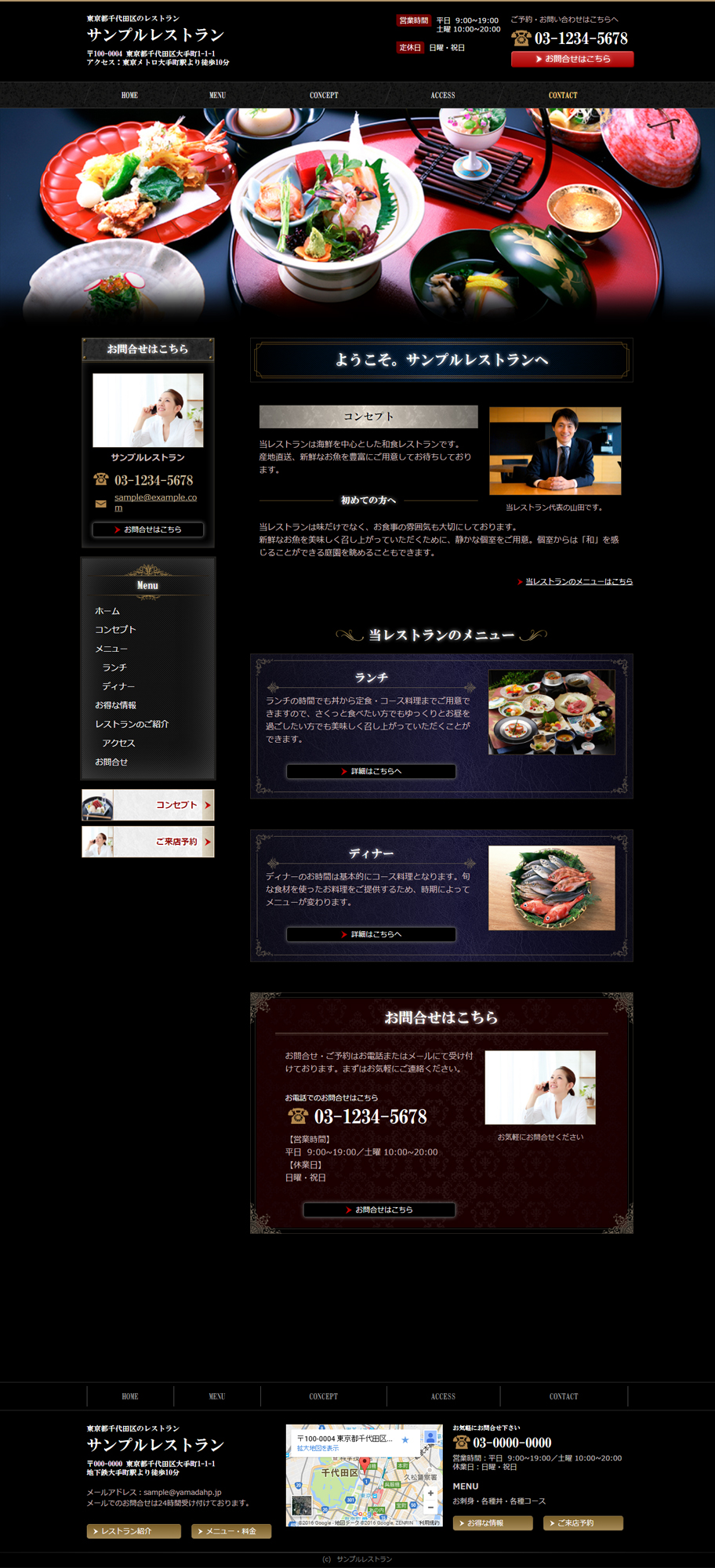 ※サンプルにより、トップページのサイドメニューの有無、色味や装飾(見出しやアイコンの形)などを変更できない場合がございます。 あらかじめご了承ください。