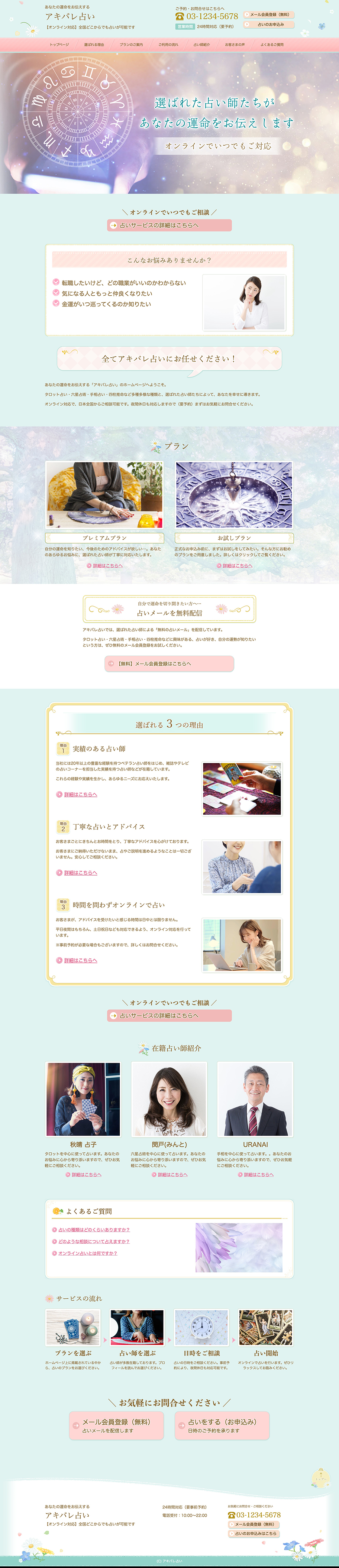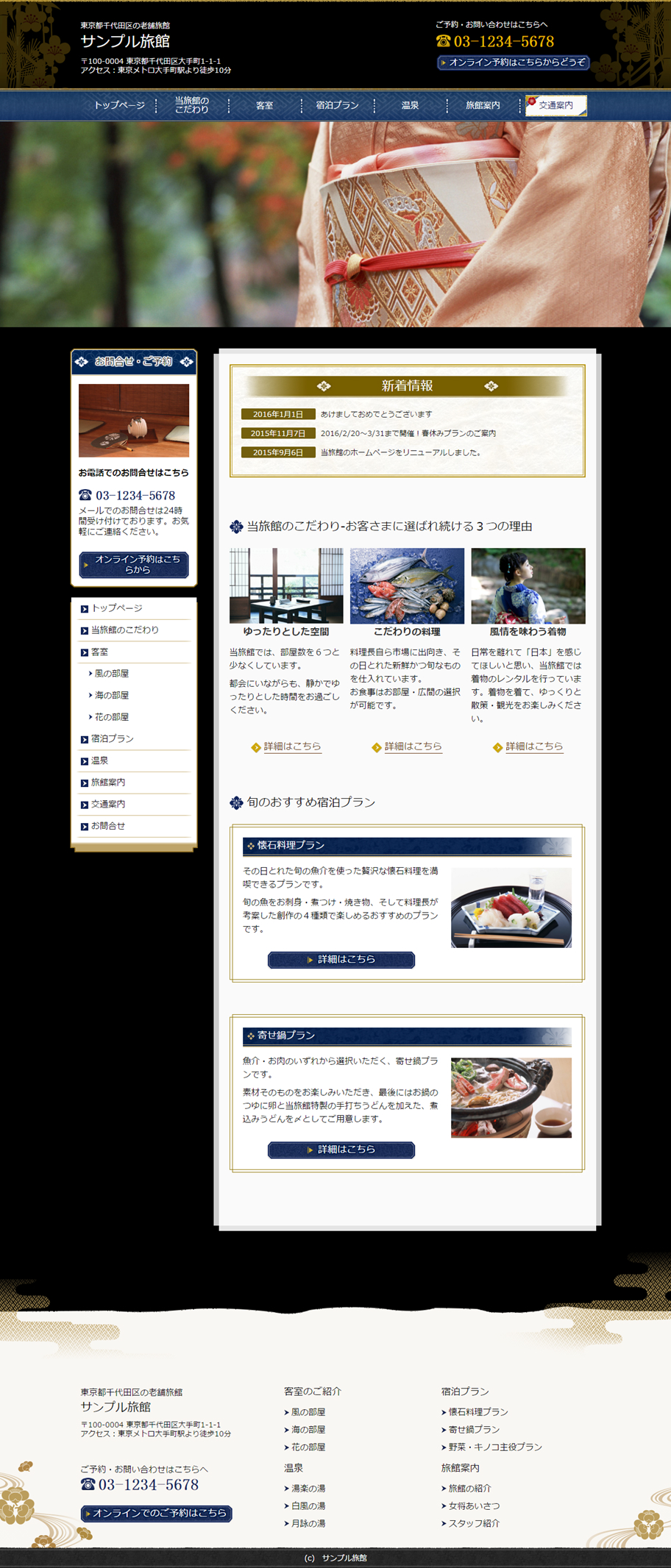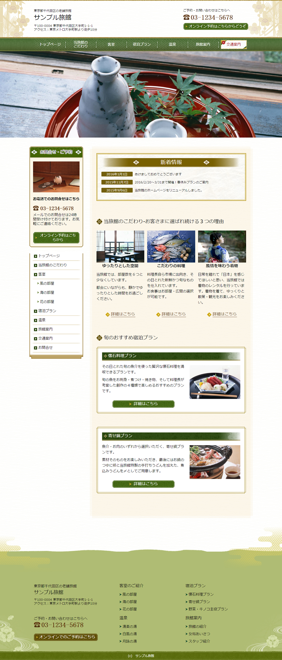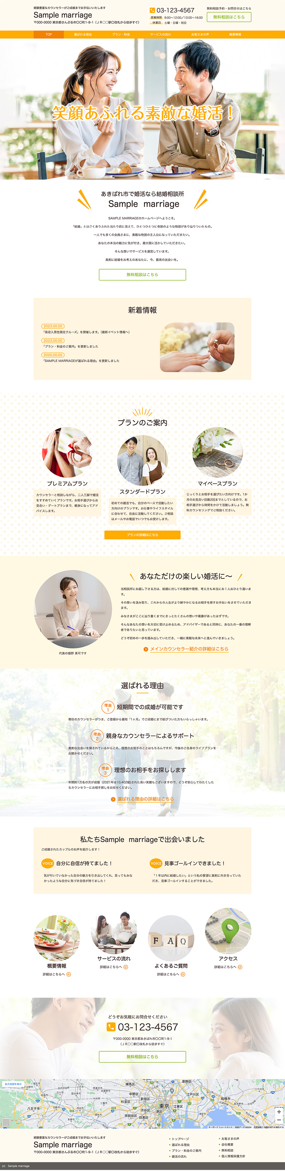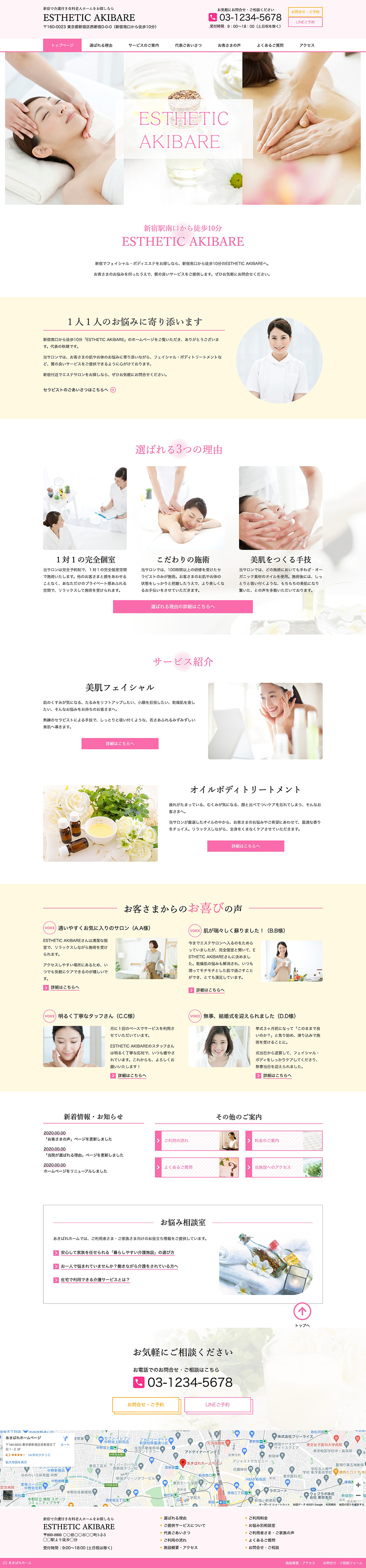 ※サンプルにより、トップページのサイドメニューの有無、色味や装飾(見出しやアイコンの形)などを変更できない場合がございます。 あらかじめご了承ください。